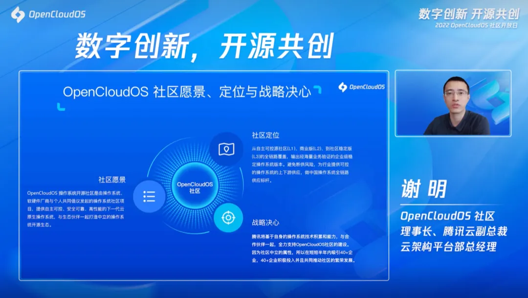 OpenCloudOS 社区理事长、腾讯云副总裁谢明表示: