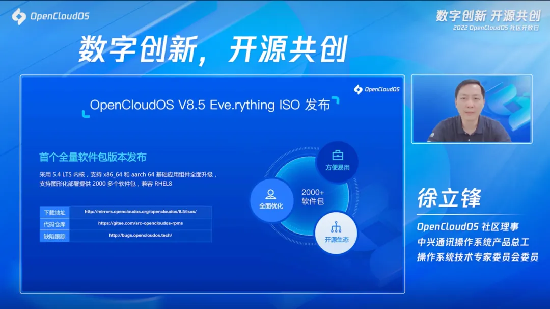 OpenCloudOS 社区理事、中兴操作系统产品总工、操作系统专家委员会委员徐立锋介绍,OpenCloudOS 社区能够集中操作系统优势力量,解决行业应用难题。
