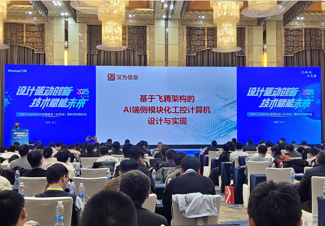 12月24日,飞腾平台应用设计全国巡讲(长沙站)暨技术创新论坛圆满落幕。本次活动以 “设计驱动创新,技术赋能未来” 为主题,聚焦飞腾 CPU 应用创新设计核心技术,汇聚行业关键客户与上下游厂商,旨在打破技术壁垒,共享实践成果,推动飞腾平台应用设计技术的深度落地,共筑产业协同发展新格局。