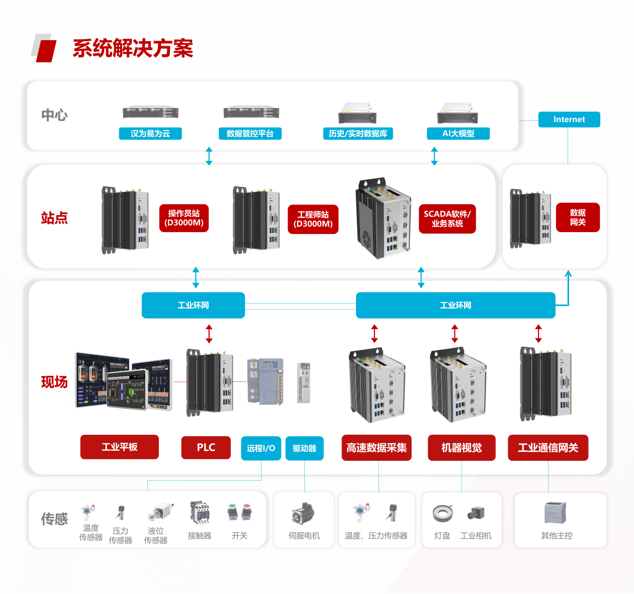 整机达到工业 4 级标准,能胜任工业控制系统中的 PLC、SCADA、HMI、网关、边缘AI工作站等多种角色。同时该系列产品还能搭配汉为易为云实现数字化远程运维,为用户提供包括设备远程软硬件状态监测、OTA、远程Shell、远程文件交换等便利运维工具。